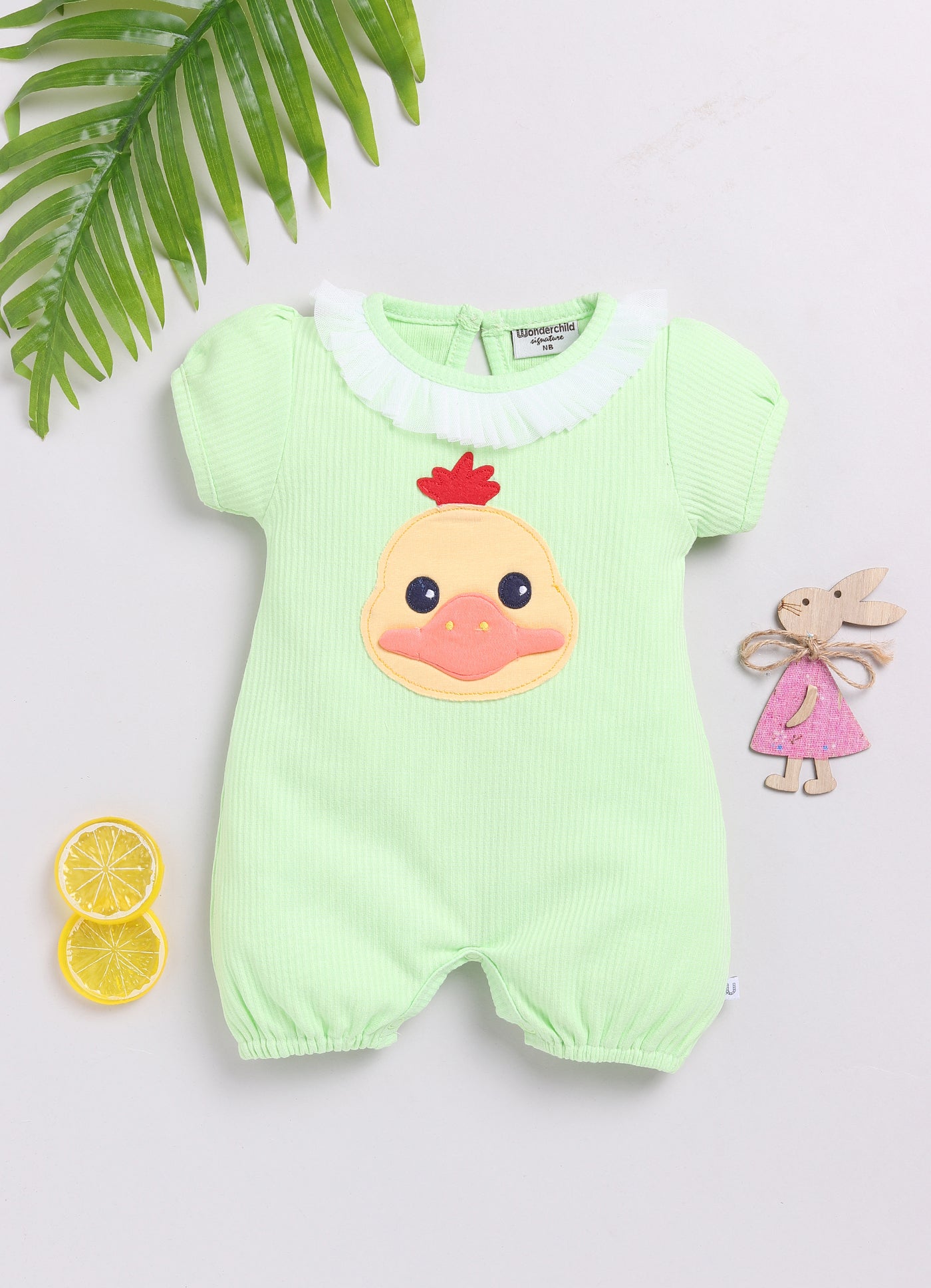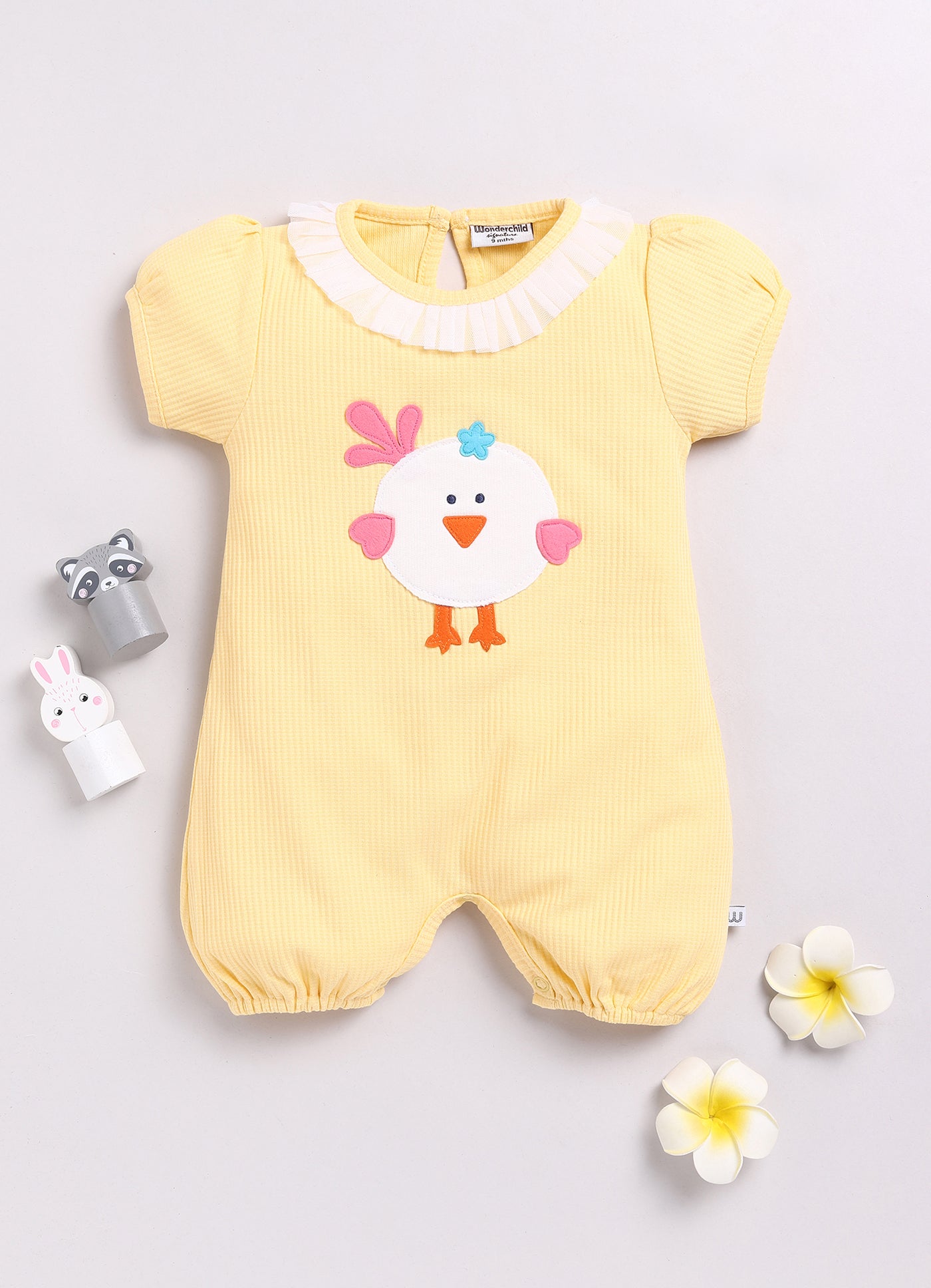Transform your baby's look with this fantastic Pretty Romper! Featuring an adorable bunny / duck / chuck print, your little one will be both comfortable and stylish. With a back button for easy changing and a variety of colors to choose from, this romper is a must-have for any parent!