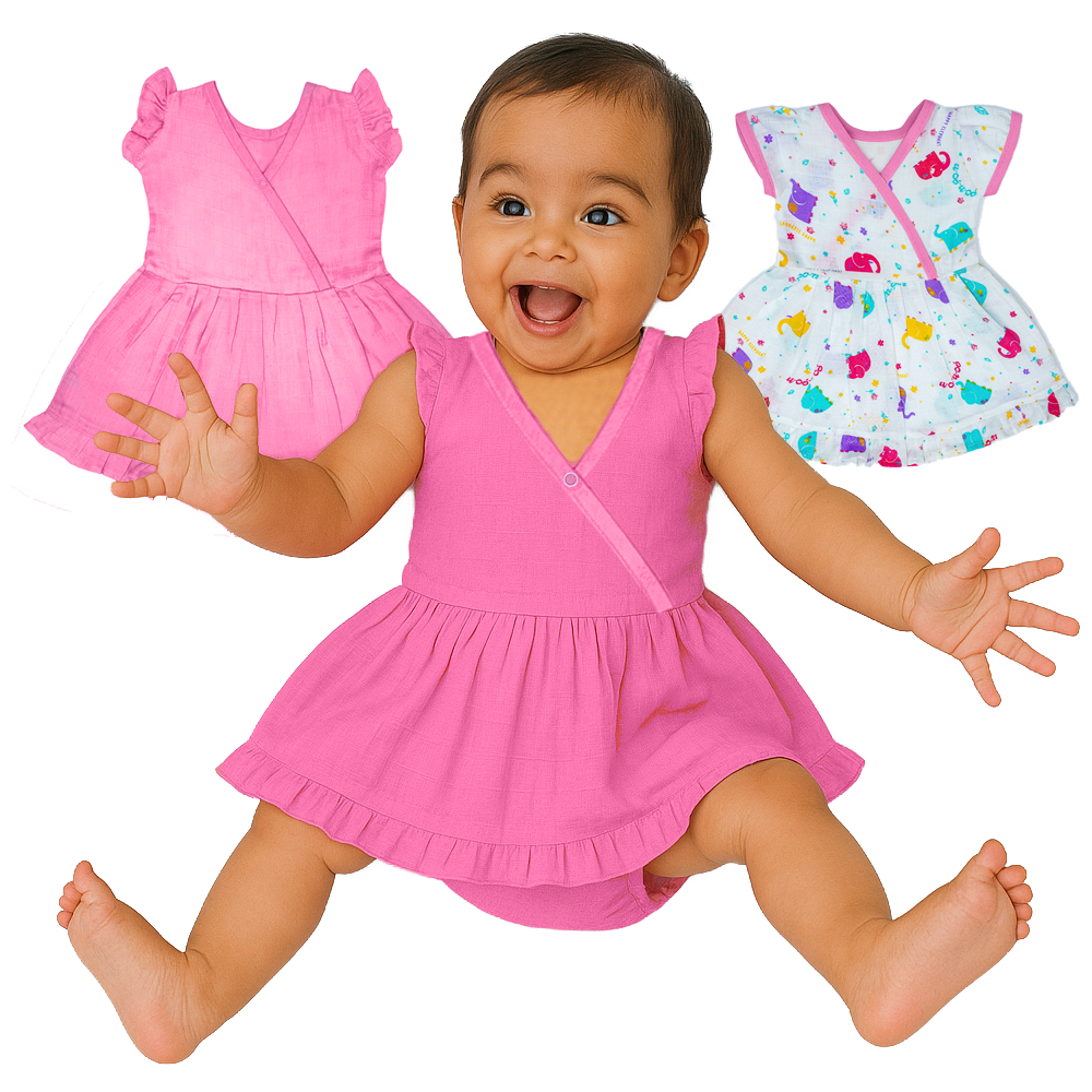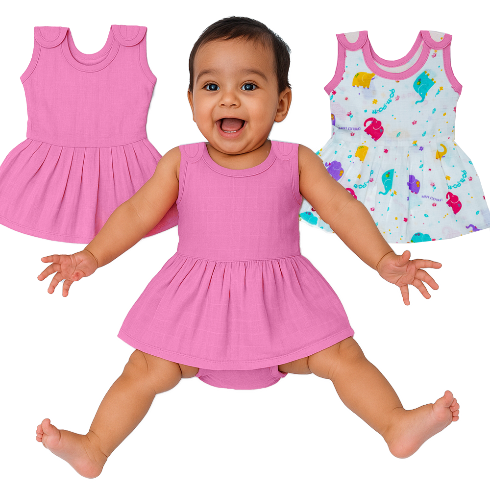 Set of 2 baby frocks made from 100% muslin cotton. Soft, breathable, and gentle on skin. Perfect for gifting or daily comfort. Cute, cozy, and skin-friendly!